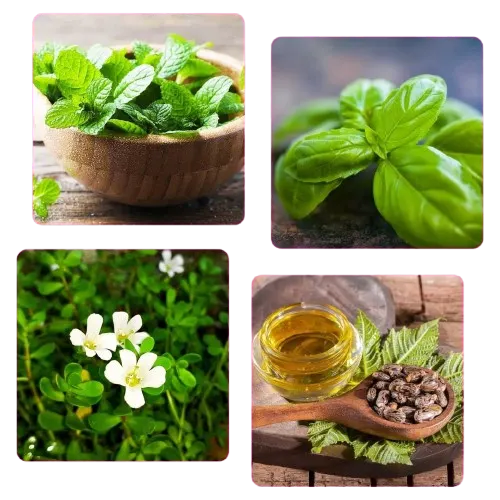 Made pure with the goodness of nature's powerful ingredients, such as Peppermint Leaves, Basil Leaf Water, Bacopa Monnieri Water, and Castor Oil.